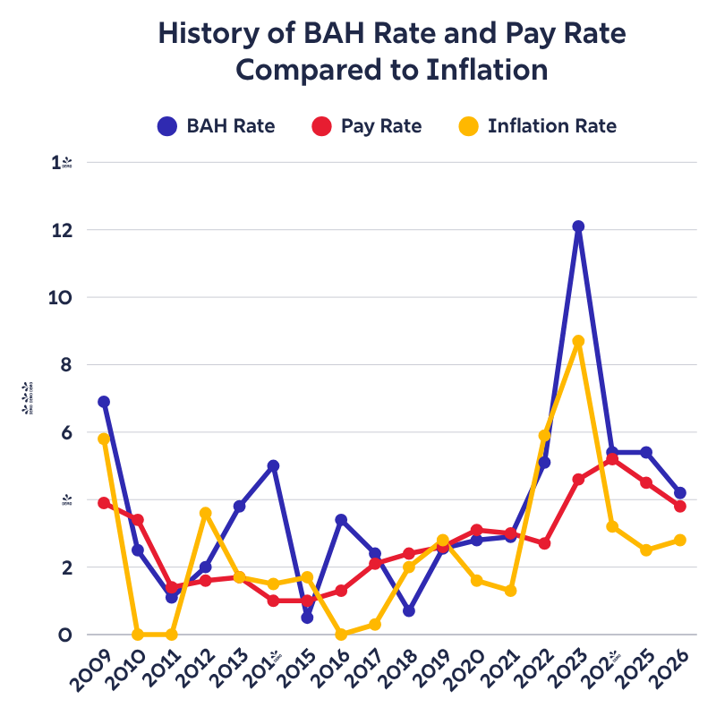 BAH rates increased an average of 4.2% in 2026, following back-to-back 5.4% increases in 2024 and 2025.
